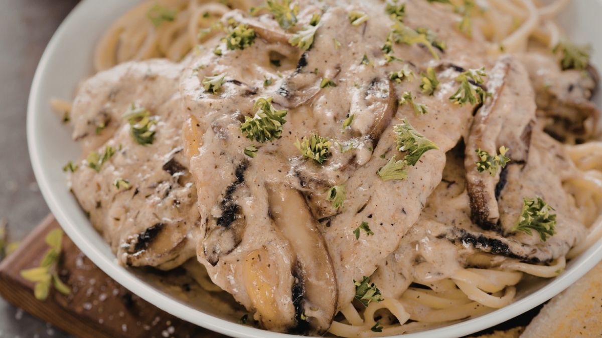 Classic comfort food reaches new heights when tender poultry meets a rich and velvety sauce. The earthy flavor of fresh mushrooms blends beautifully with garlic and cream to create a luxurious coating for the meat.